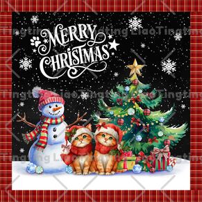 Christmas,Christmas Tree,Snowman,Cat,Snowflake,Gift,Text,Winter,Plaid,Red