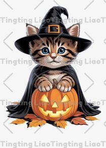 Cat,Halloween,Illustration,Pumpkin Lantern,Wizard Hat