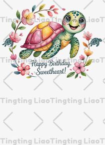 Cartoon Turtle,Birthday Wishes,Colorful Flowers,Natural Elements,Lovely Style