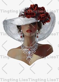 White Wide-ranging Hats,Red Roses,Elegant Women,Diamonds,Noble Fashion
