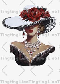 White Wide-ranging Hats,Red Roses,Elegant Women,Diamonds,Noble Fashion
