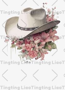 White Cowboy Hats,Western Elements,Floral Decorations,Watercolor Winds,Art Illustrations