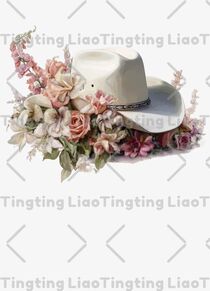 White Cowboy Hats,Western Elements,Floral Decorations,Watercolor Winds,Art Illustrations