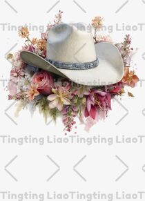 White Cowboy Hats,Western Elements,Floral Decorations,Watercolor Winds,Art Illustrations