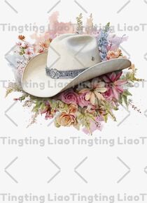 White Cowboy Hats,Western Elements,Floral Decorations,Watercolor Winds,Art Illustrations