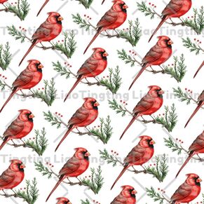 Christmas,Cardinal Birds,Sandpins,Retro,Art