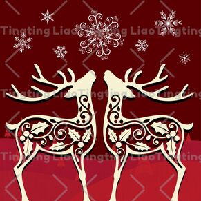 Christmas,Deer,Snowflowers,Art,Retro,Decoration