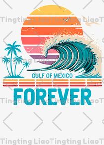Waves,Palm Trees,Sunset,Seagull,Gulf,Coast,Timeless,Colorful Gradient,Retro