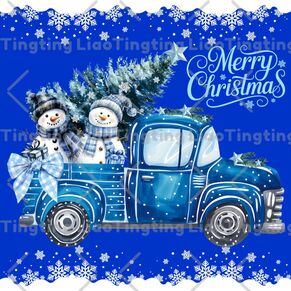 Christmas,Truck,Snowman,Christmas Tree,Snowflakes,Blue,Winter