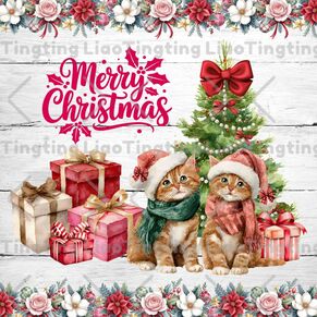 Christmas,Cats,Christmas Trees,Gifts,Flowers,White Woods,Winter