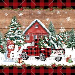 Christmas,Winter,Snowman,Christmas Tree,Truck,Farmhouse