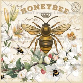 Farmhouses,Flowers,Turquoise,Bees,Antique Letters