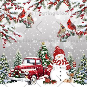 Christmas,Winter,Snowman,Christmas Truck,Fir Leaves,Christmas Bird,Gray Gradient