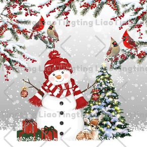 Christmas,Winter,Snowman,Fir Leaves,Christmas Bird,Gray Gradient