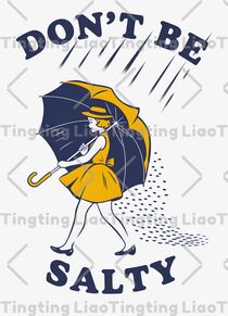 Retro,Umbrella Lady,Rainy Day,Playful Text,Humor,Nostalgic Style