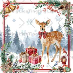 Christmas,Deer,Peacock,Ponyper,Gift,Plant,Berries,Bells,Snowflakes,Snowscape