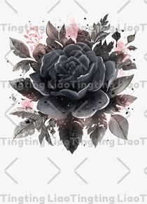 Black Roses,Dark Black Lines,Watercolor Illustrations