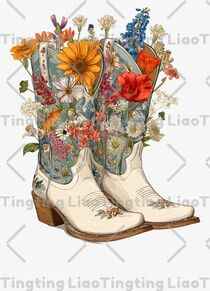 Cowboy Boots,Flowers,Illustrations,Art,Fields