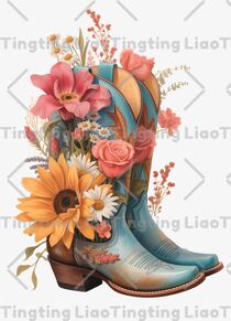 Cowboy Boots,Flowers,Illustrations,Art,Fields