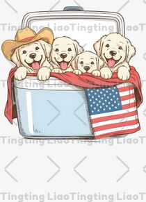 Labrador,Incubator,Cowboy Hat,American Flag,Cartoon,Puppy