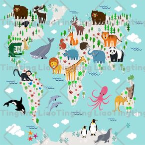 Animal,Ocean,Flowers,Tree,Clouds,Cute,Cartoon