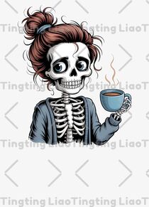 Brown,Blue,White,Gray,Cartoon,Classic,Life,Nature,Skeletons Churned With Pill Head,Wearing Open Shirts,Holding Coffee Cups