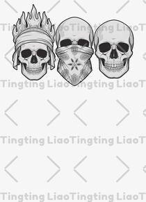 Black,White,Art,Classic,Fashion,Flame Clothing,Pesley Striped Head Scarf,Short Skull
