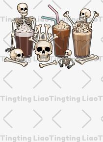 Brown,White,Art,Classic,Fashion,Skeletons,Skullheads,Bones,Creams,Cocoa Broken Drinks