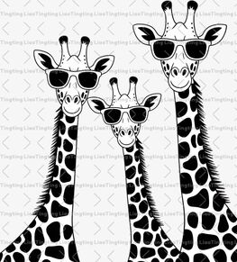 Giraffe,Sunglasses,Black And White,Illustration,Simple Style