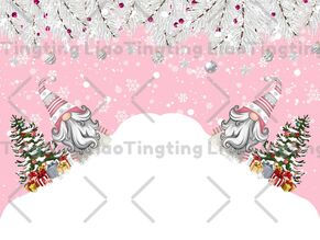Christmas,Winter,Dwarfs,Snowflakes,Christmas Trees,Triangular Curtains,Pink
