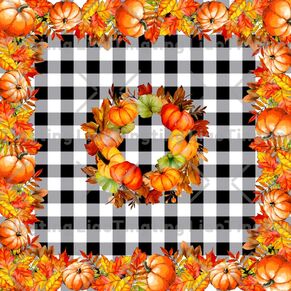 Thanksgiving,Autumn,Pumpkin,Maple Leaf,Watercolor Foliage,Vintage,Farm,Black And White Plaid
