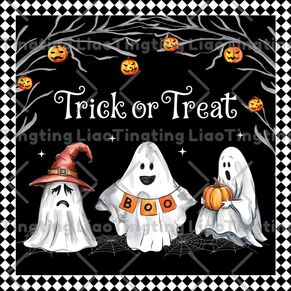 Halloween,Watercolor,Pumpkin,Ghost,Trick,Horror,Black And White Plaid Trick,Or,Treat