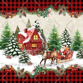 Christmas,Santa Claus,Sled,Reindeer,Cottage,Forest,Christmas Tree,Winter,Snowflakes,Plants,Graffiti,Cloth