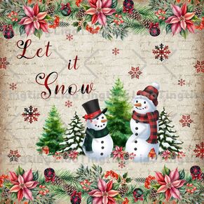 Christmas,Snowman,Christmas Tree,Winter,Snowflakes,Flowers,Pine Fruit,Berries,Vintage Letters