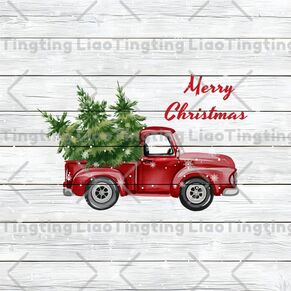 Christmas,Winter,Car,Red,Christmas Tree,Snowflakes,White Woodcuts