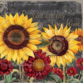 Sunflowers and red chrysanthemums on vintage blackboard
