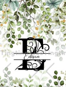 Letter Custom E,Sage Green,Eucalyptus Leaf,Farm,Farmhouse,Vintage