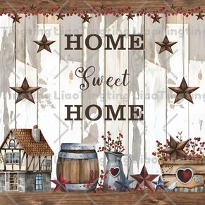 American country style farmhouse and country star pattern with the words HOME SWEET HOME