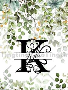 Custom Letter K,Sage Green,Eucalyptus Leaf,Farm,Farmhouse,Vintage