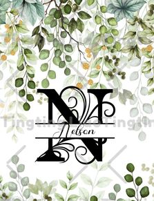 Letter Custom N,Sage Green,Eucalyptus Leaf,Farm,Farmhouse,Vintage