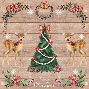 Christmas,Christmas Tree,Deer,Bird,Plant,Snowflake,Winter,Woodcut