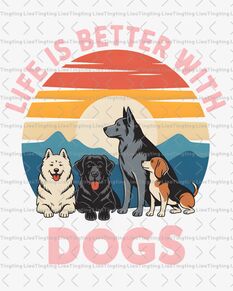 DOGS,English Short Sentence,Dog,Illustration,Mountain,Sunset