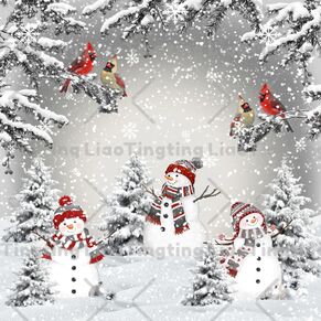 Christmas,Snowman,Christmas Tree,Berries,Christmas Bird,Grey Snowscape