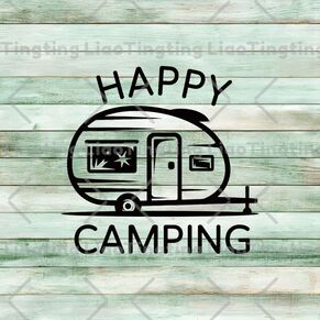 Camping,Camping Car,Green Wooden Stripes,Vintage