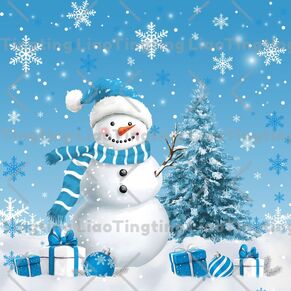 Christmas,Winter,Christmas Tree,Sky Blue,Snowman,Gift,Snowflake