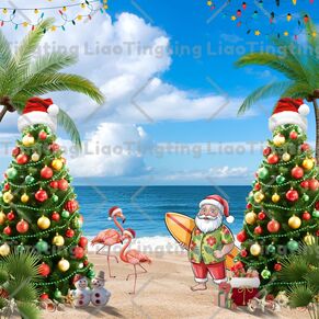 Christmas,Santa Claus,Beaches,Christmas Trees,Flaming Birds,Coconut Trees