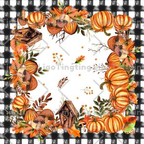 Thanksgiving,Autumn,Pumpkin,Fallen Leaves,Farm,Black And White Plaid
