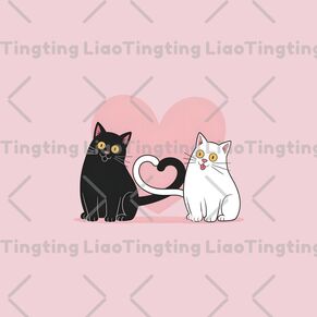 Valentine's Day Pink Love,Black And White Cat In Love,Pink