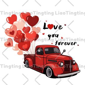Valentine's Day,Love Balloons,Romantic,Red Truck With Love Balloons,White