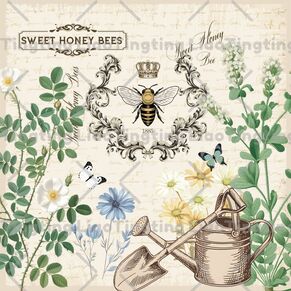 Retro,Bees,Crowns,Sweet,Honey,Bees,Flowers,Butterflies,Rice